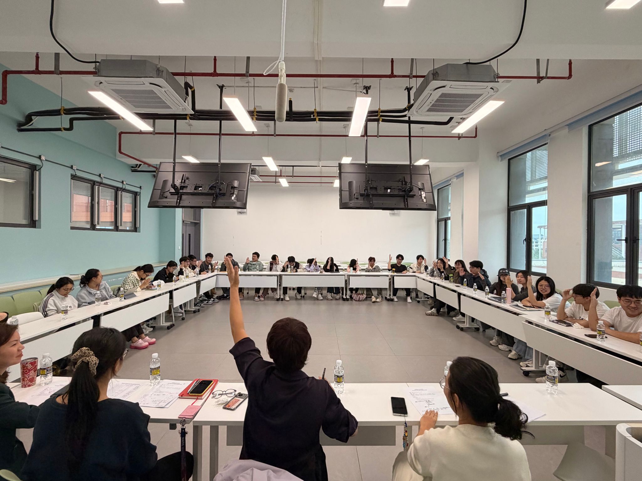 自由交流环节气氛热烈,王琳院长鼓励学生结合专业学习和个人发展需求,制定现阶段的“小目标”,把语言学习放在首位,利用校区资源,积极与外籍教师交流,主动说出来,认真听起来,努力学起来。参会老师逐一耐心回应,既针对具体问题提供可操作的解决方案,也分享往届学生的学习经验与成长案例。现场互动频繁、干货满满,切实为学生答疑解惑、提振学习信心。