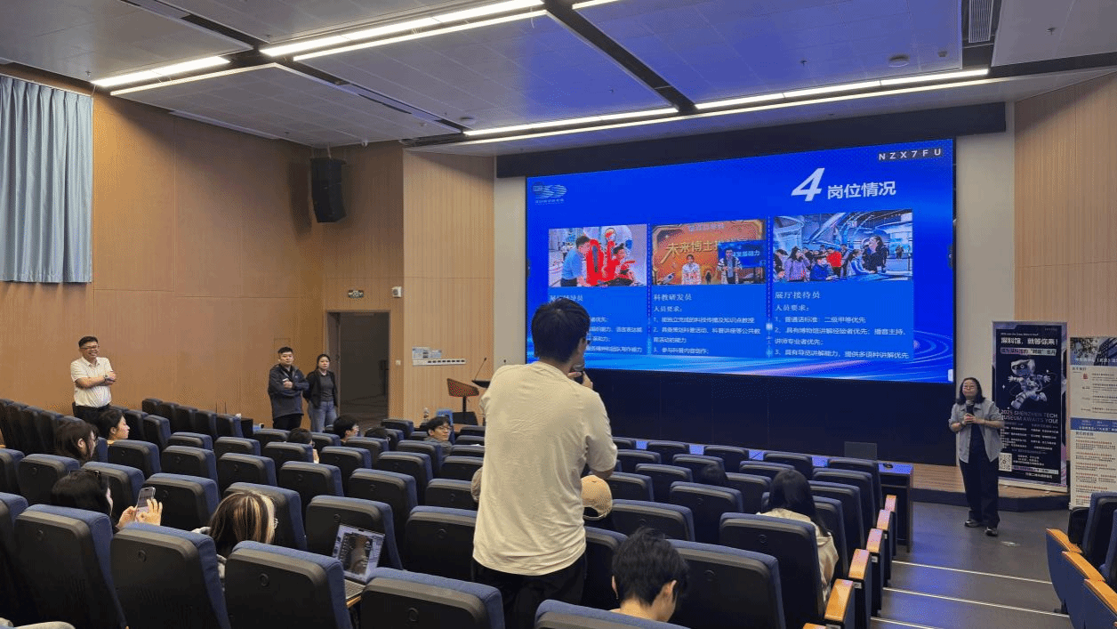 在实习和就业招聘岗位介绍环节,企业聚焦深圳科技馆运营需要,推出了展厅辅导员、科教研发专员、国际接待专员等一系列兼具专业性与发展潜力的岗位。公司代表强调,公司将为实习生、入职录用者提供系统化培训、多元化职业发展路径及行业领先的薪酬福利体系,致力于为青年人才提供与国际接轨的职业成长平台。