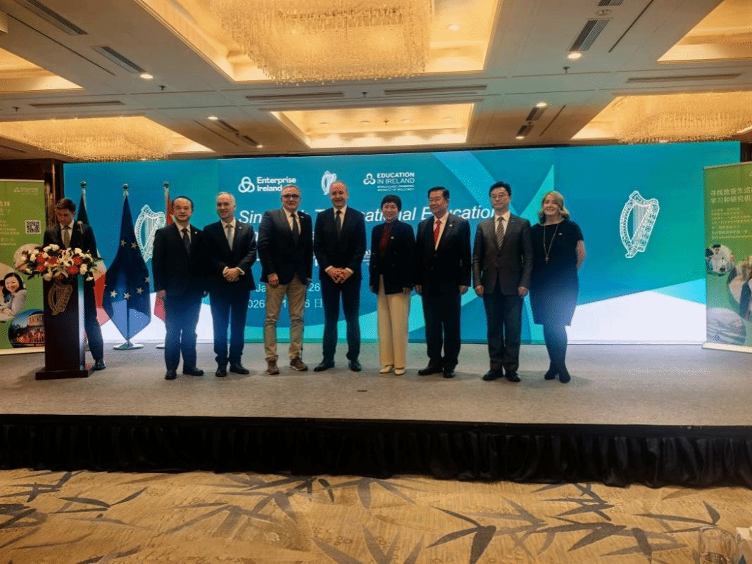 本次活动是爱尔兰总理米哈尔・马丁1月4日开启对华正式访问后的重要教育交流环节,承载着深化中爱两国教育领域务实合作的重要意义。中国教育国际交流协会会长刘利民、中国驻爱尔兰大使赵希源,爱尔兰驻华大使欧博仁、爱尔兰贸易与科技局亚太区董事玛珂娜,以及爱尔兰教育推广署、中外高校代表 150 余人齐聚一堂,共话中爱教育合作新未来。爱尔兰驻华大使欧博仁博士在现场介绍,过去十年是中爱教育合作持续深化的关键时期,跨境教育伙伴关系实现显著增长。截至目前,两国合作办学机构及项目总数已达110个,在读学生规模超12000人,为中爱人文交流搭建起坚实桥梁。据了解,随着新项目持续落地,预计到2026年9月,相关在读学生规模将突破15000人。