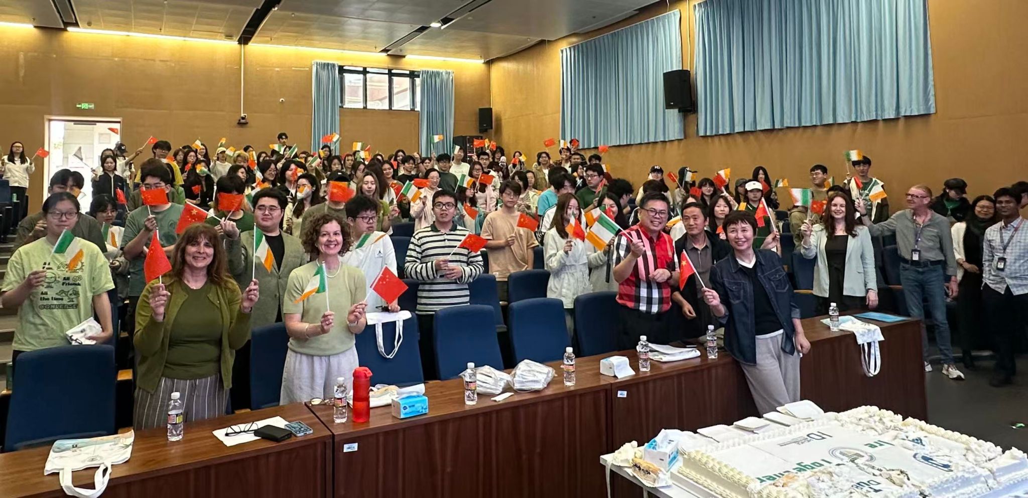 本次活动旨在搭建中爱文化交流平台,通过文化互动,让学生体验中外双方文化差异,进一步深化中外师生互信与友谊。活动现场举行切蛋糕仪式,正式发布中爱国际合作办学项目全新标识。